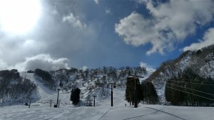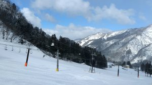 一里野の平日の広々としたゲレンデはスキー、スノーボードにチャレンジするのにピッタリ!