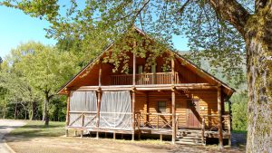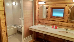 コテージはバス、トイレ付、寝室にはベッドが用意されているので、気楽にアウトドア気分を味わいながら気の合う仲間や家族と過ごせますよ。