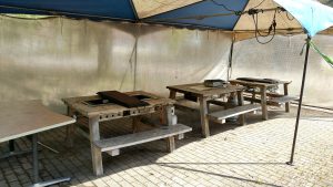 今年のバーベキューは4月25日からということで、16人用コテージのテントやバーベキュー機材の準備もされました。